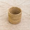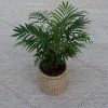 סל אחסון עגול, עשוי קש קשיח, משמש כבית עציץ.