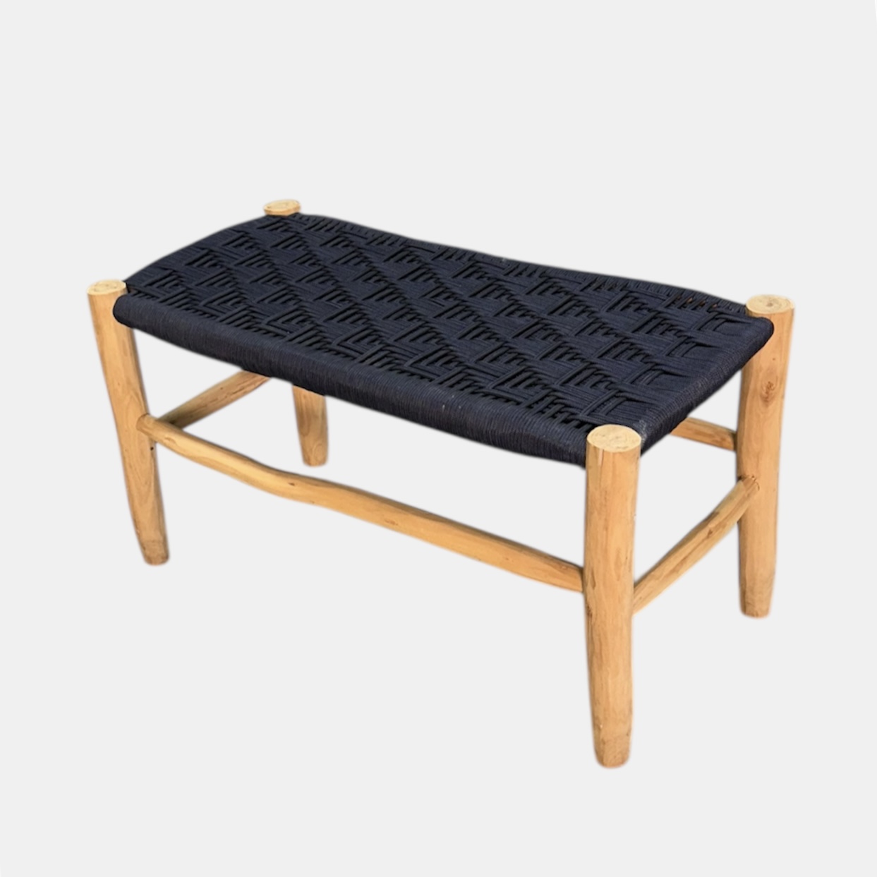ספסל עץ מהמם, מתאים לכל פינה בבית! עשוי עץ אקליפטוס מגולף בשילוב חוטים ירוקים.