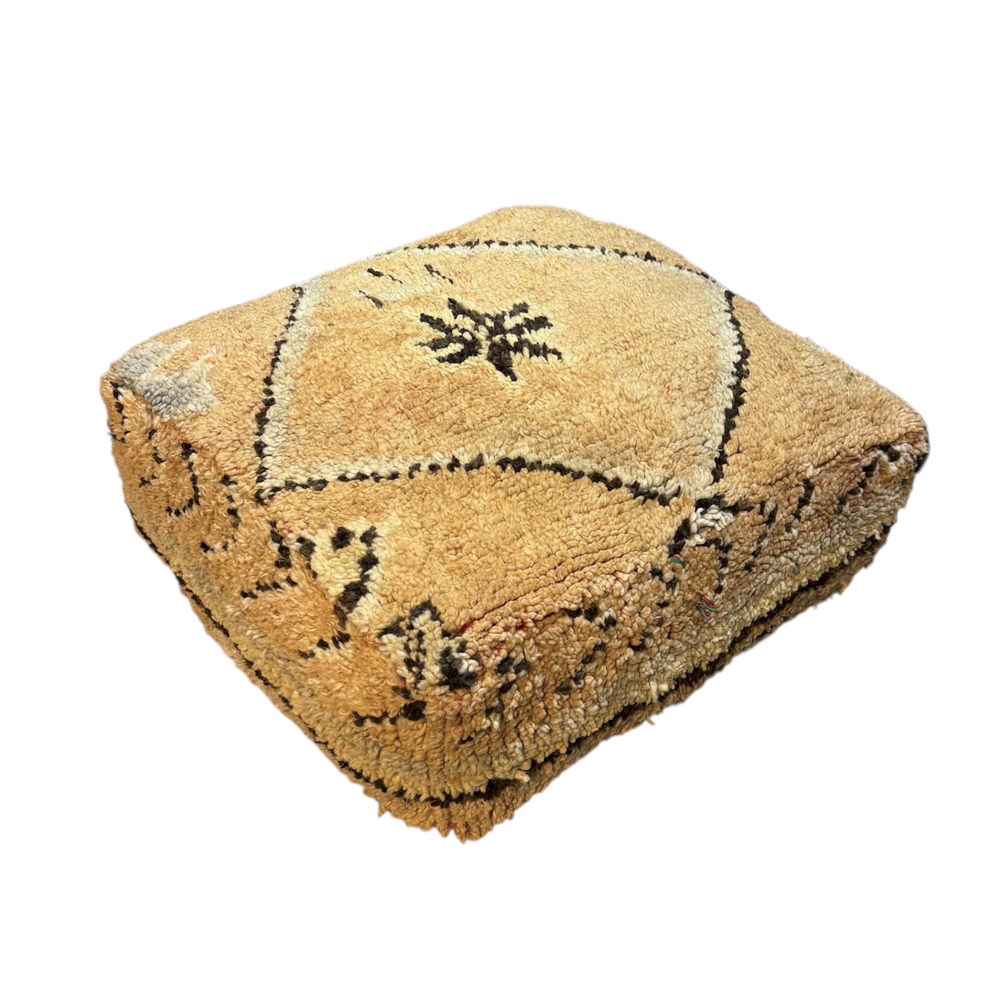 פוף עשוי צמר, נארג בעבודת יד משטיח מרוקאי אותנטי, לישיבה נמוכה או לשדרוג חלל הבית.