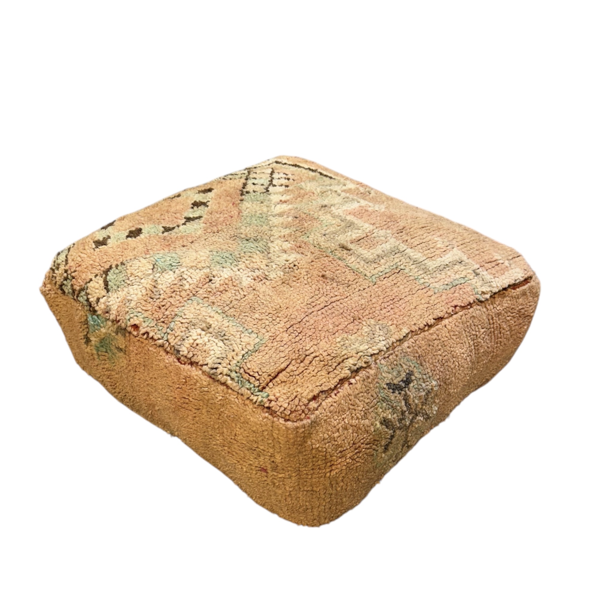 פוף עשוי צמר, נארג בעבודת יד משטיח מרוקאי אותנטי, לישיבה נמוכה או לשדרוג חלל הבית.